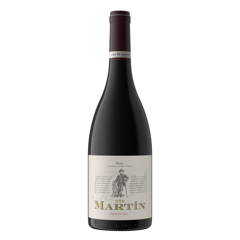 Botella de 750 cc de TIO MARTIN CRIANZA . 14 º Viñedos de mas de 40 años 70% Tempranillo, 22% Garnacha 5% Mazuelo 3% Graciano